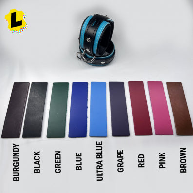 Lower profile but just as strong and durable as their wider counterparts, these cuffs are a great fit for beginners and experts alike! Made of soft and flexible veg tan leather and lined with soft garment leather, they also feature a metal D-ring sewn beneath the first layer of leather and attached with four sturdy rivets. The buckle to these cuffs also has a lock ring for optional lock-and-key restraint play.