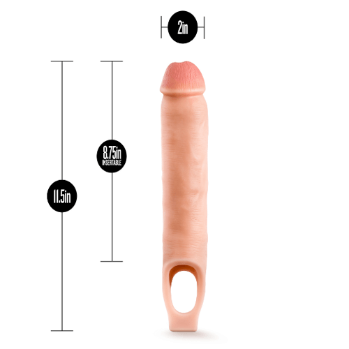 This 11.5 Inch sheath-style penis extender offers a smooth, stimulating feel while maximizing your potential. Gain more girth and 2.5 inches extra length!